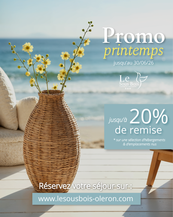 * El Camping Le Sous Bois se reserva el derecho, dentro de los límites permitidos por la ley, de finalizar, modificar o retirar sus ofertas promocionales sin previo aviso.